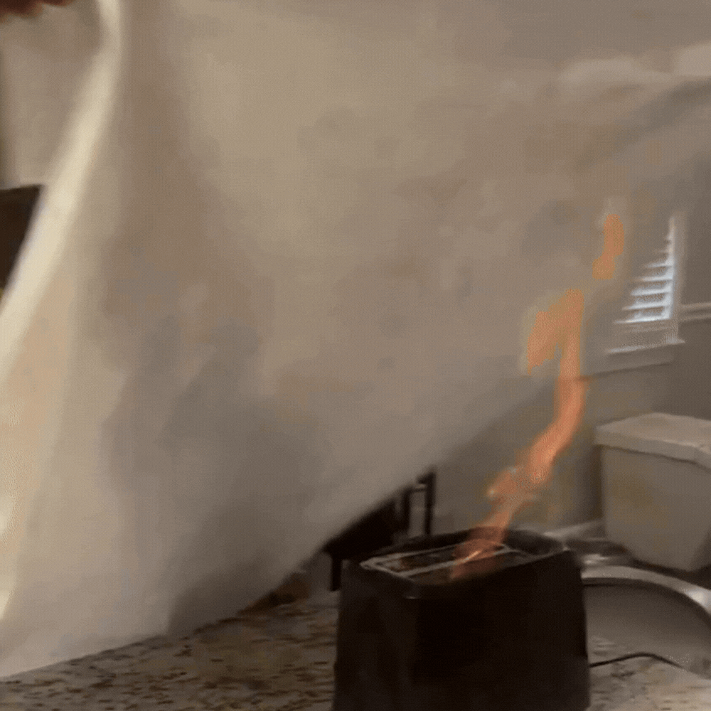 Einfache Handhabung im Notfall: In einem Moment der Panik ist jede Sekunde kostbar. Die FireDefender Feuerdecke lässt sich mit einer Hand bewegen und direkt über die Flammen werfen, ein einfacher Schritt, der alles verändern kann.